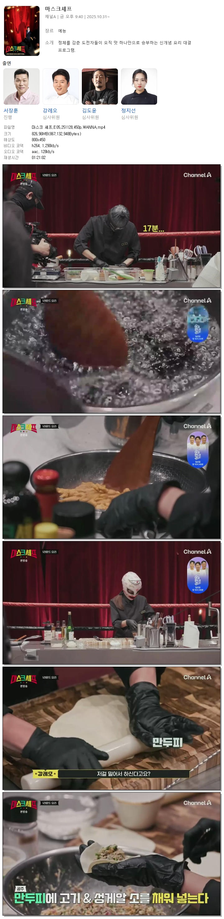 [채널A] 마스크 셰프.E05.251128.450p.WANNA[서장훈, 강레오] 다시보기 토렌트