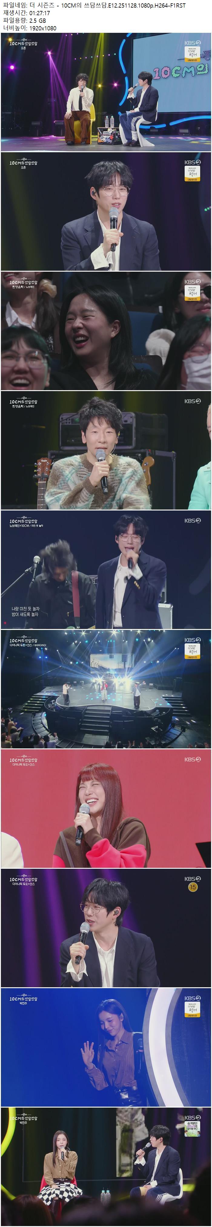 | 더 시즌즈 - 10CM의 쓰담쓰담.E12.251128.1080p.H264-F1RST.mp4 | 2.5 G | - | 1920x1080 |
