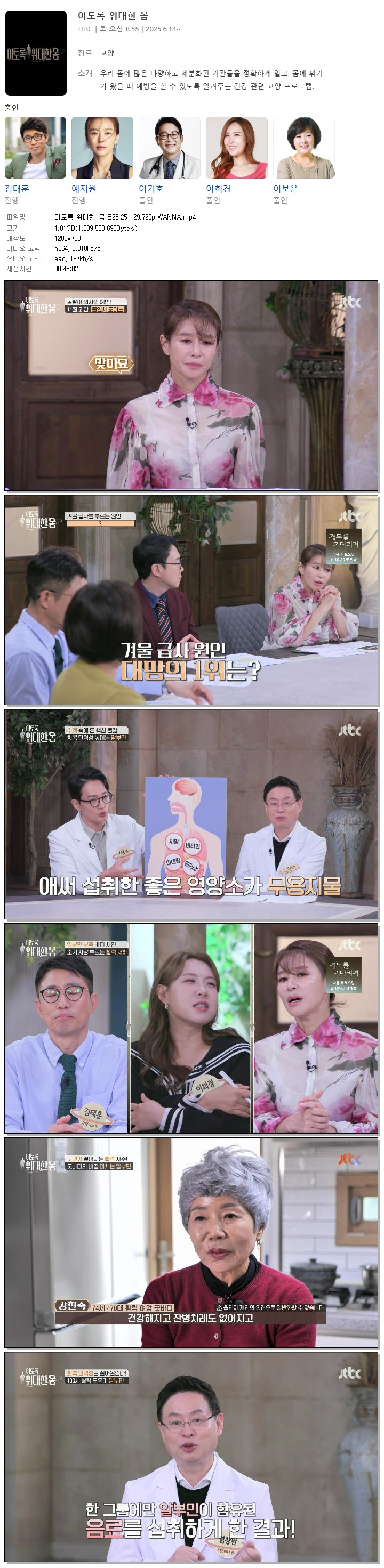 [JTBC] 이토록 위대한 몸.E23.251129.720p.WANNA[김태훈, 예지원].mp4 1 G 00:45:02 1280x720
