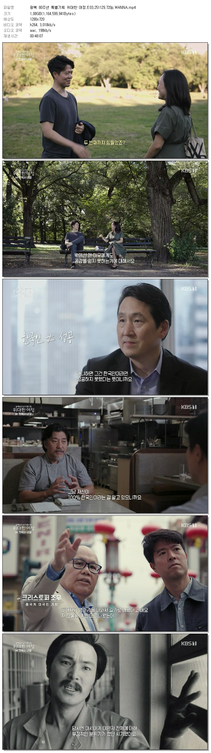 | [KBS1] 광복 80주년 특별기획 위대한 여정.E03.251129.720p.WANNA.mp4 | 1.1 G | 00:48:07 | 1280x720 |