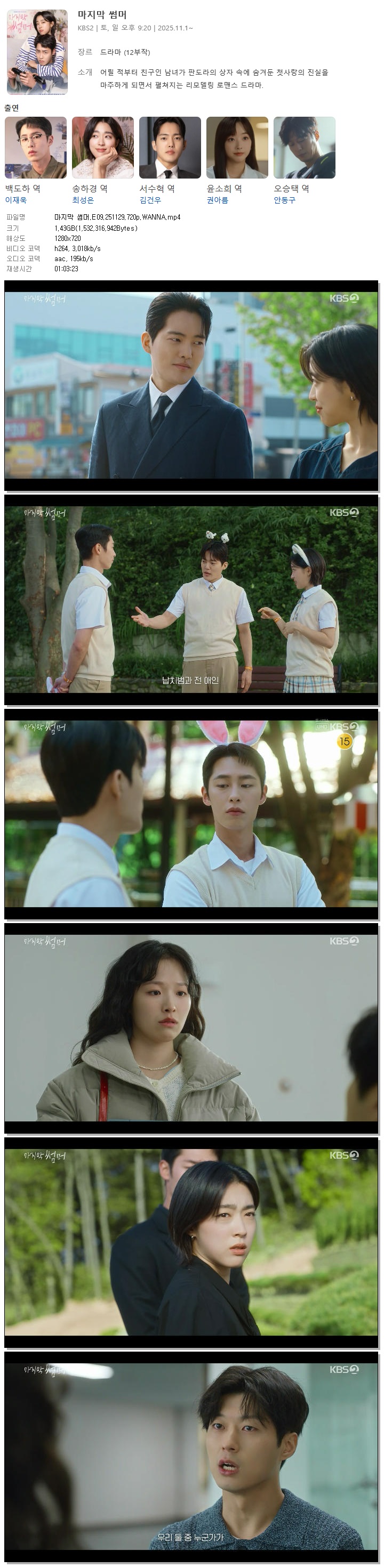 [KBS2] 마지막 썸머.E09.251129.720p.WANNA[이재욱, 최성은].mp4 1.4 G 01:03:23 1280x720