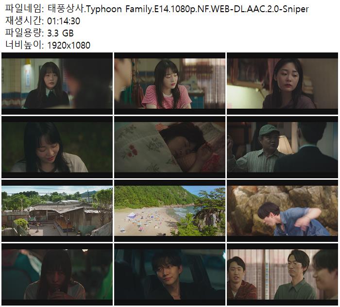 | 태풍상사.Typhoon Family.E14.1080p.NF.WEB-DL.AAC.2.0-Sniper.mkv | 3.3 G | - | 1920x1080 |