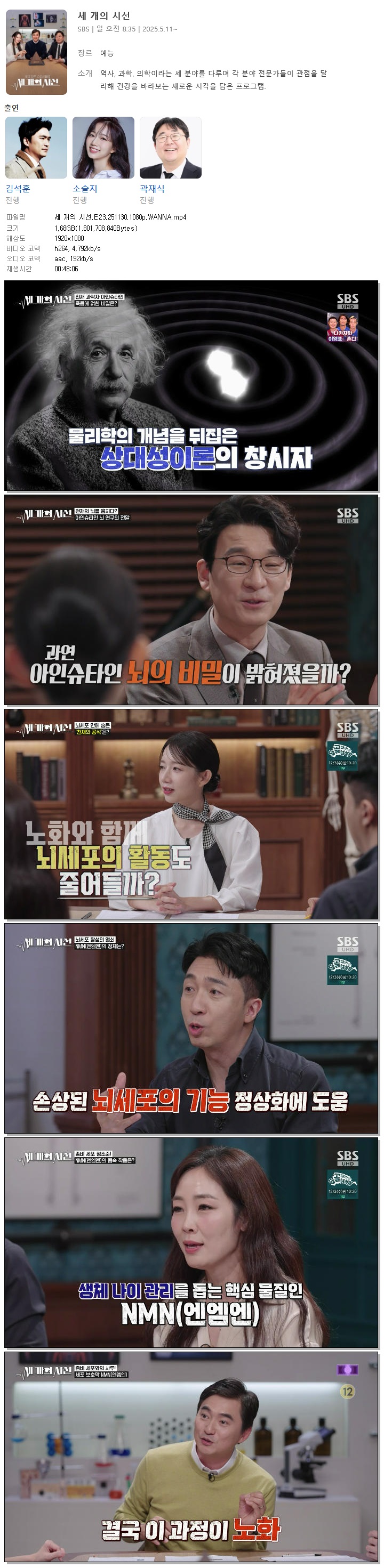 | [SBS] 세 개의 시선.E23.251130.1080p.WANNA[김석훈, 소슬지].mp4 | 1.7 G | 00:48:06 | 1920x1080 |