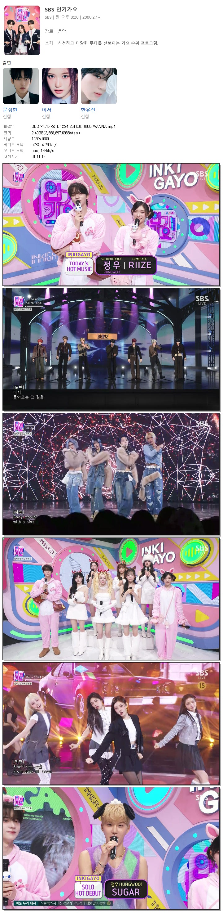 | [SBS] SBS 인기가요.E1294.251130.1080p.WANNA[정우, 아일릿].mp4 | 2.5 G | 01:11:13 | 1920x1080 |