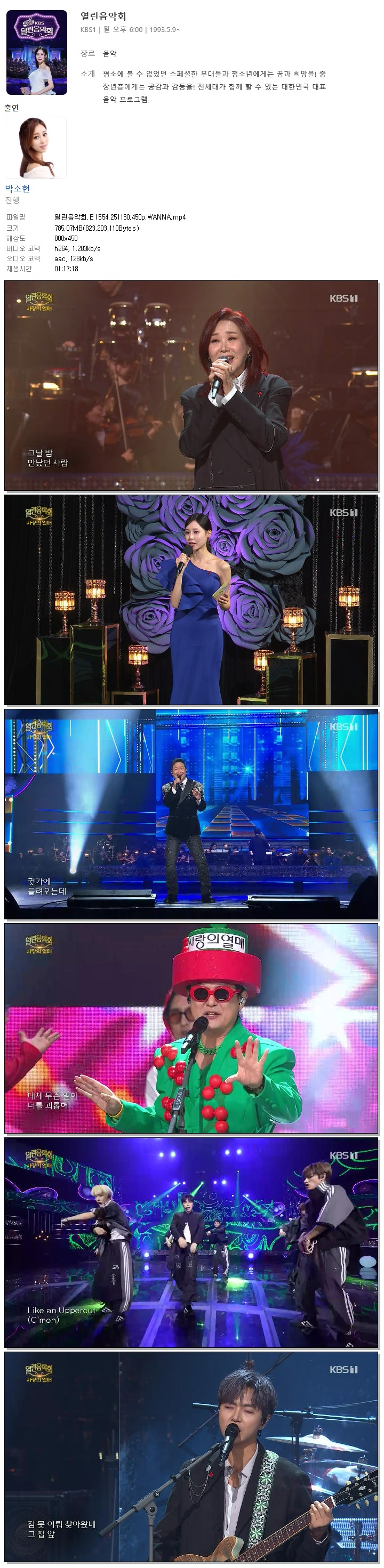[KBS1] 열린음악회.E1554.251130.450p.WANNA[임한별, 하츠투하츠] 다시보기 토렌트