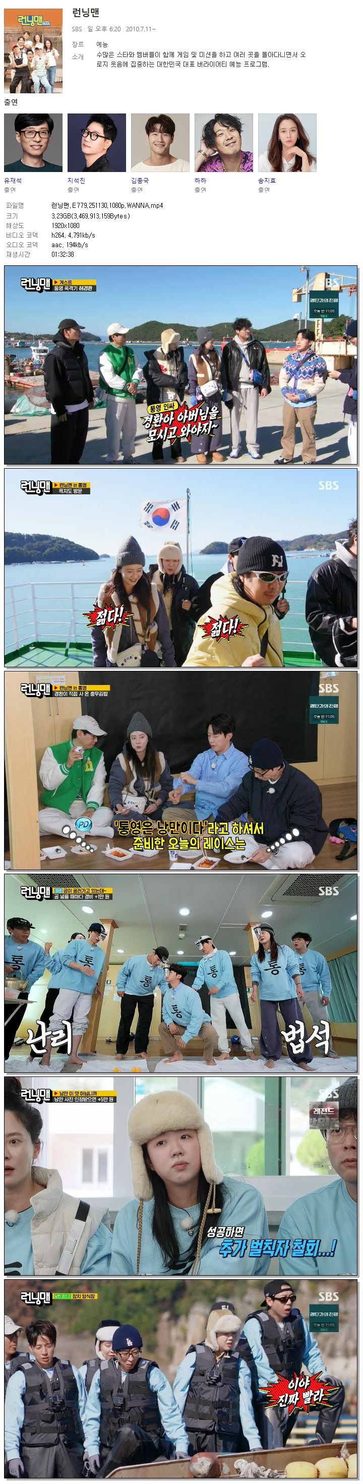 | [SBS] 런닝맨.E779.251130.1080p.WANNA[허경환, 유재석].mp4 | 3.2 G | 01:32:38 | 1920x1080 |