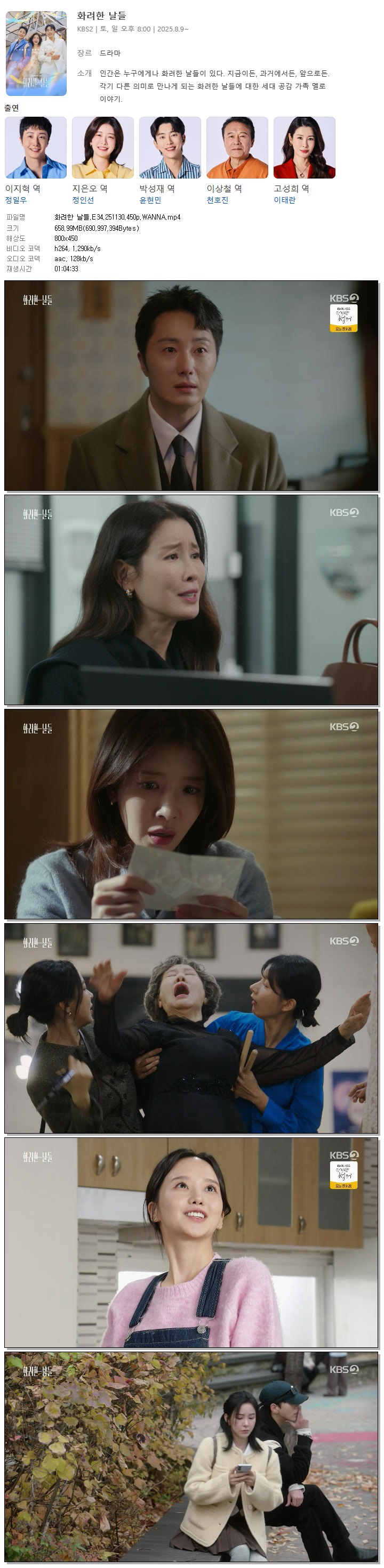 [KBS2] 화려한 날들.E34.251130.450p.WANNA[정일우, 정인선].mp4 659 M 01:04:33 800x450