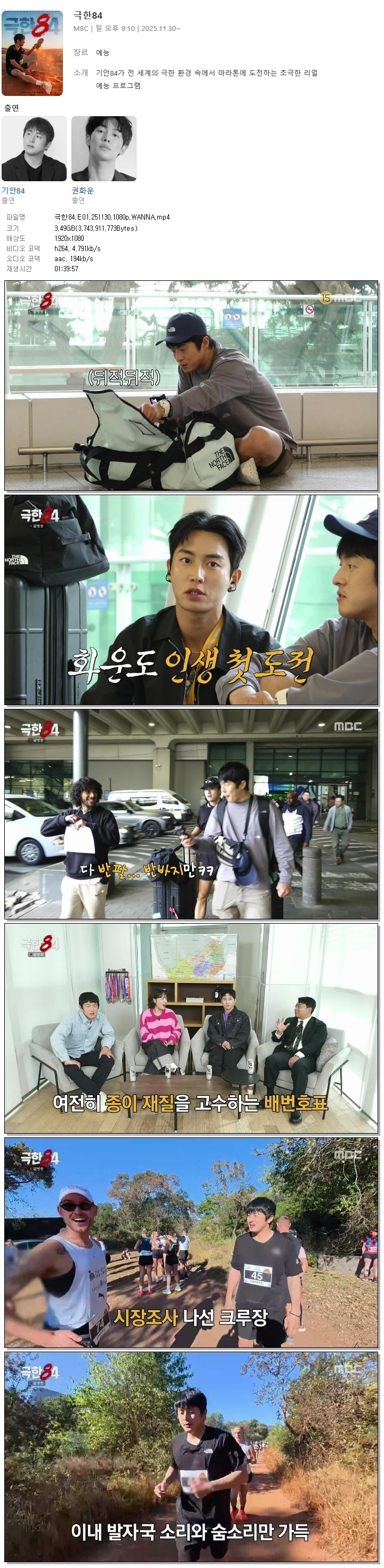 [MBC] 극한84.E01.251130.1080p.WANNA[기안84, 권화운] 다시보기 토렌트