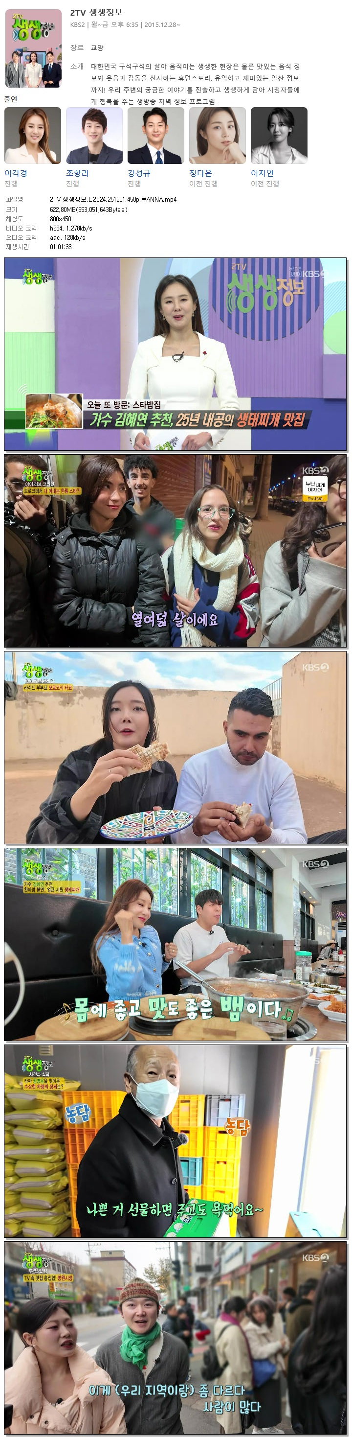 [KBS2] 2TV 생생정보.E2624.251201.450p.WANNA[이각경, 조항리].mp4 622.8 M 01:01:33 800x450