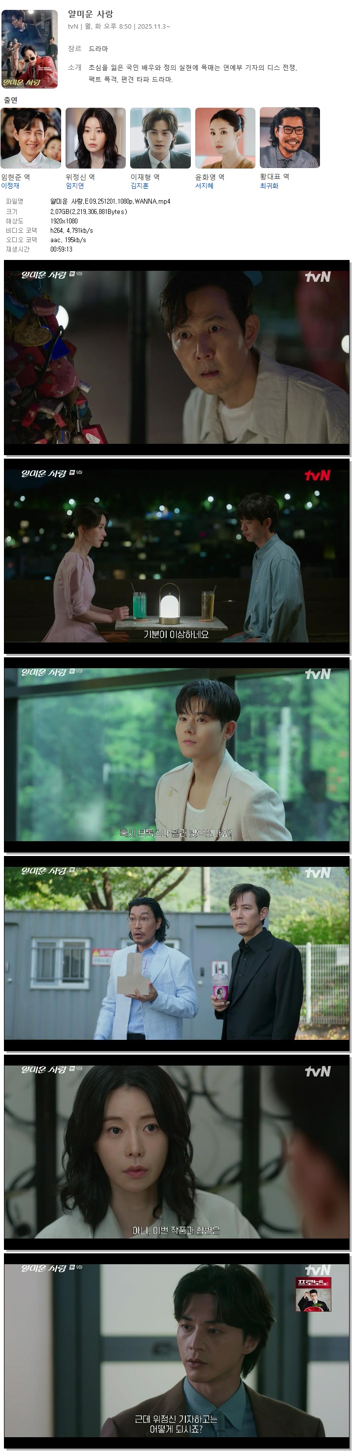 | [TVN] 얄미운 사랑.E09.251201.1080p.WANNA[이정재, 임지연].mp4 | 2.1 G | 00:59:13 | 1920x1080 |