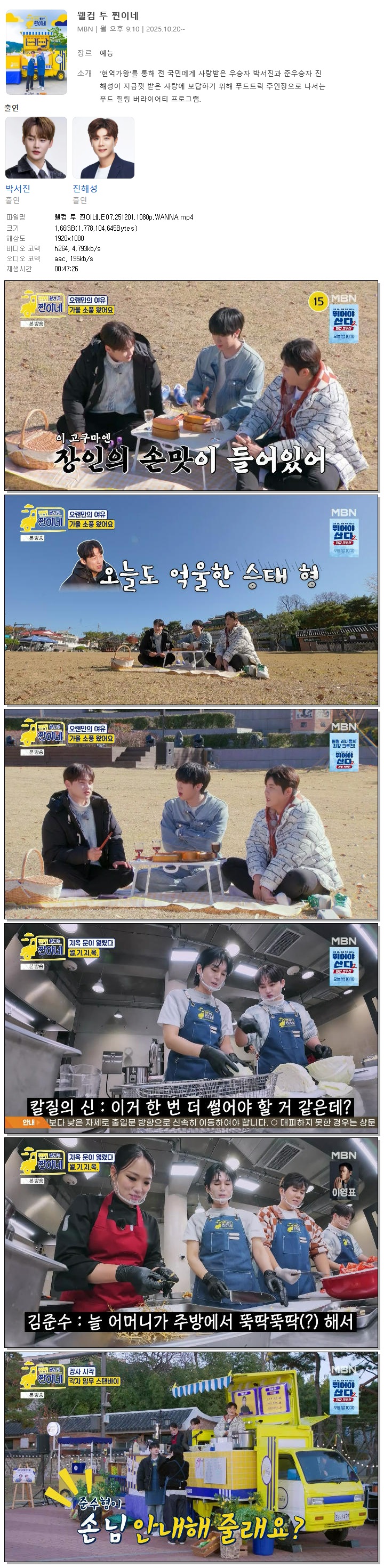| [MBN] 웰컴 투 찐이네.E07.251201.1080p.WANNA[박서진, 진해성].mp4 | 1.7 G | 00:47:26 | 1920x1080 |