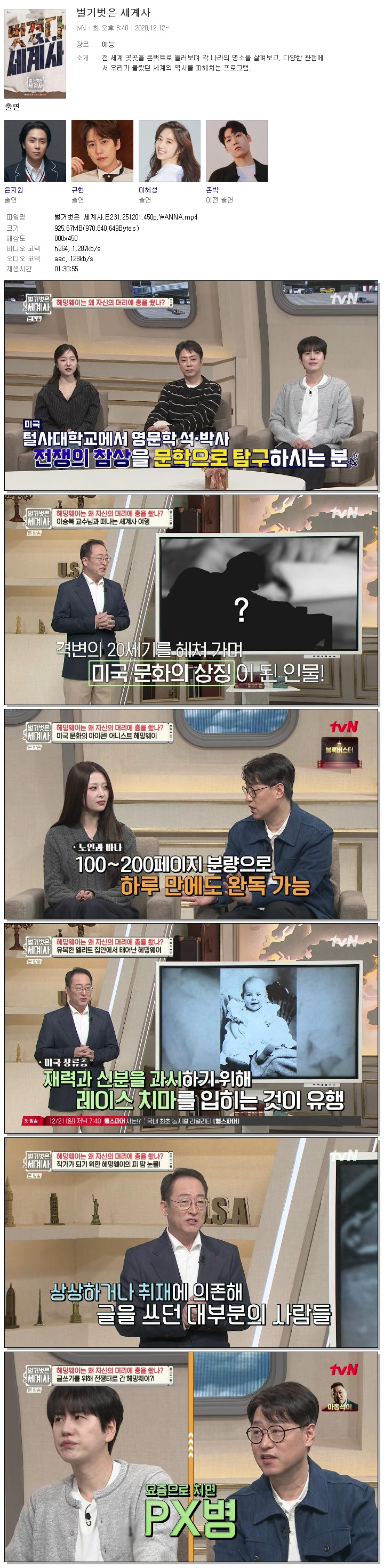 [TVN] 벌거벗은 세계사.E231.251201.450p.WANNA[은지원, 규현] 다시보기 토렌트