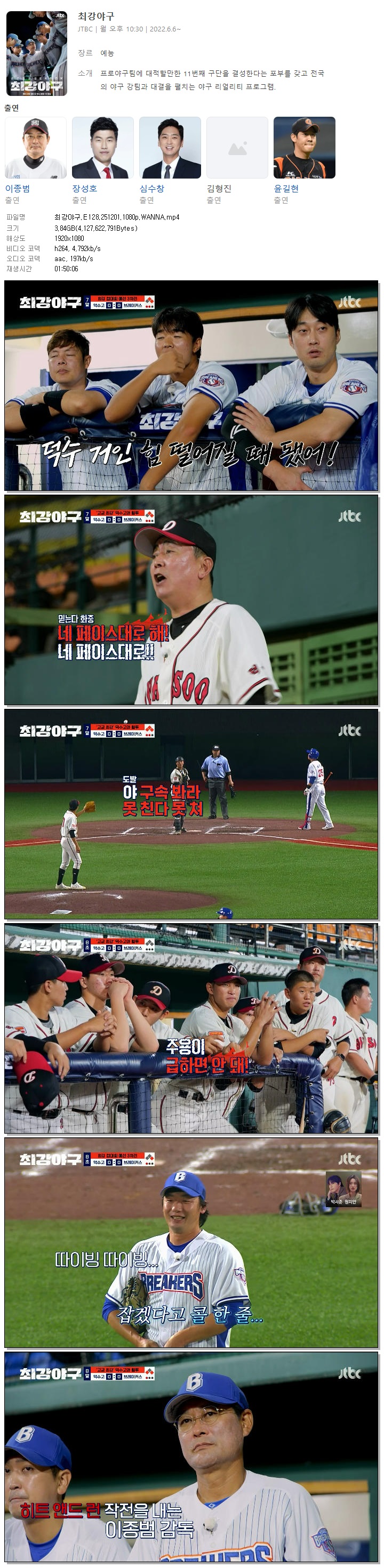 [JTBC] 최강야구.E128.251201.1080p.WANNA[권혁, 김태균].mp4 3.8 G 01:50:06 1920x1080