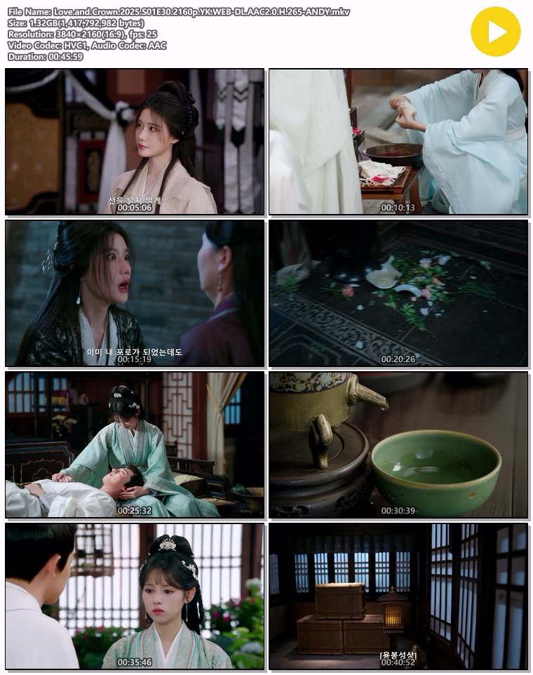 | Love.and.Crown.2025.S01E30.2160p.YK.WEB-DL.AAC2.0.H.265-ANDY.mkv | 1.3 G | 00:45:59 | 3840x2160 |