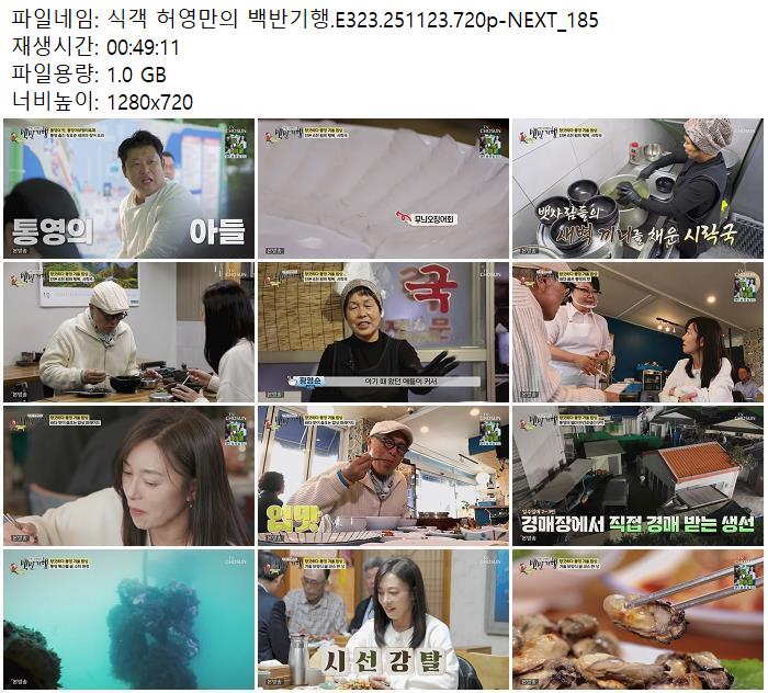 | 식객 허영만의 백반기행.E323.251123.720p-NEXT_185.mp4 | 1 G | - | 1280x720 |