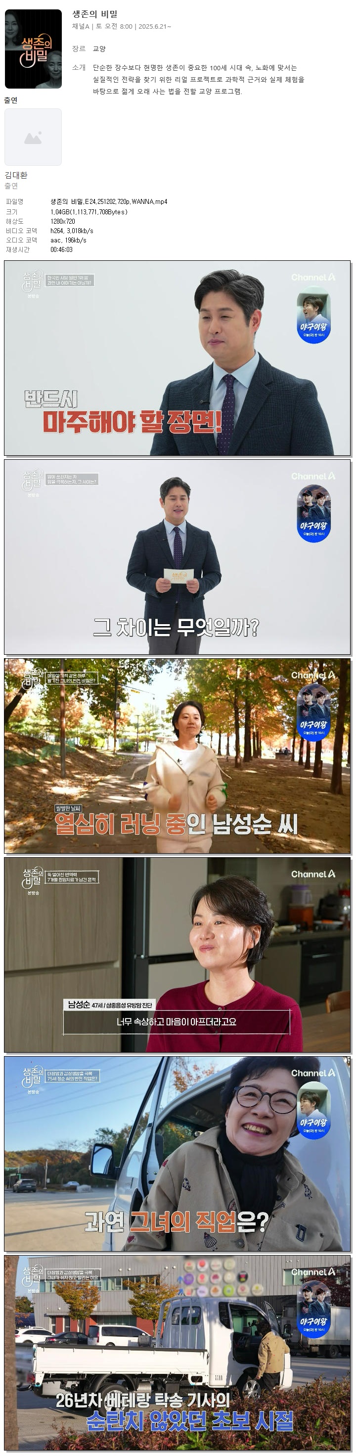[채널A] 생존의 비밀.E24.251202.720p.WANNA[김대환] 다시보기 토렌트