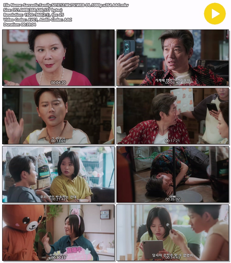 | Sarcastic.Family.S01E12.WeTV.WEB-DL.1080p.x264.AAC.mkv | 351.6 M | 00:39:04 | 1920x1080 |