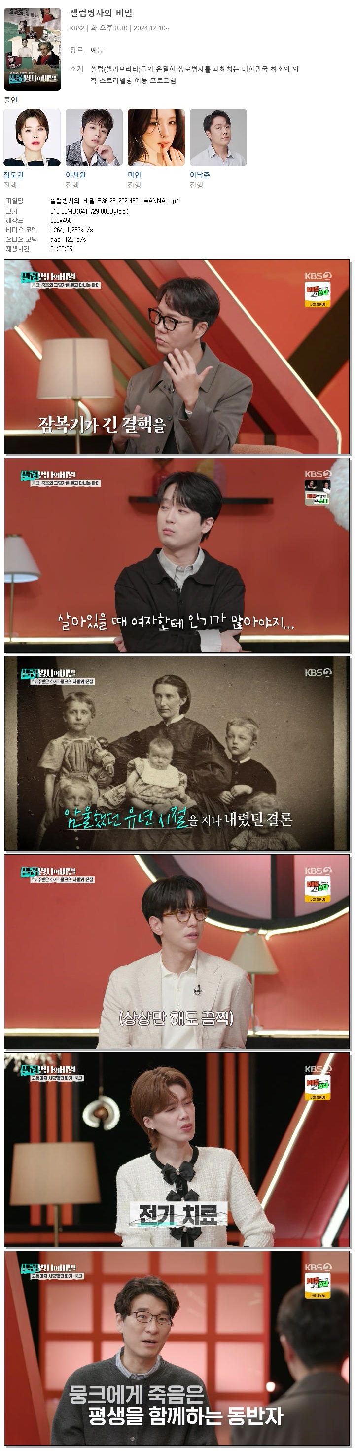 | [KBS2] 셀럽병사의 비밀.E36.251202.450p.WANNA[장도연, 이찬원].mp4 | 612 M | 01:00:05 | 800x450 |