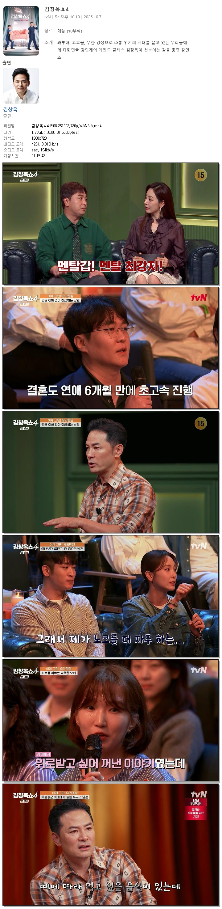 [TVN] 김창옥쇼4.E08.251202.720p.WANNA[김창옥] 다시보기 토렌트