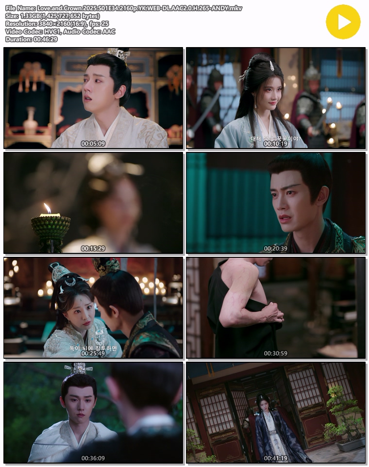 | Love.and.Crown.2025.S01E34.2160p.YK.WEB-DL.AAC2.0.H.265-ANDY.mkv | 1.3 G | 00:46:29 | 3840x2160 |