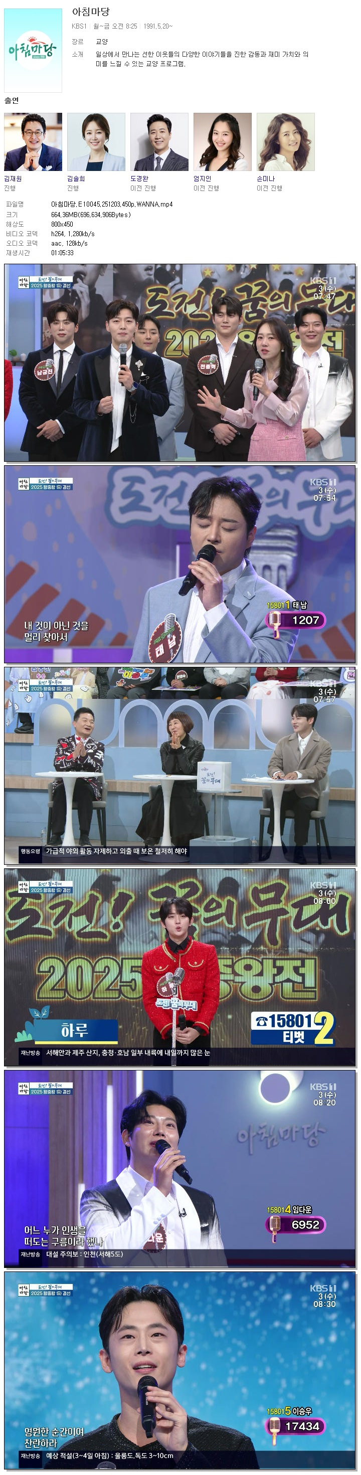 | [KBS1] 아침마당.E10045.251203.450p.WANNA[김재원, 엄지인].mp4 | 664.4 M | 01:05:33 | 800x450 |