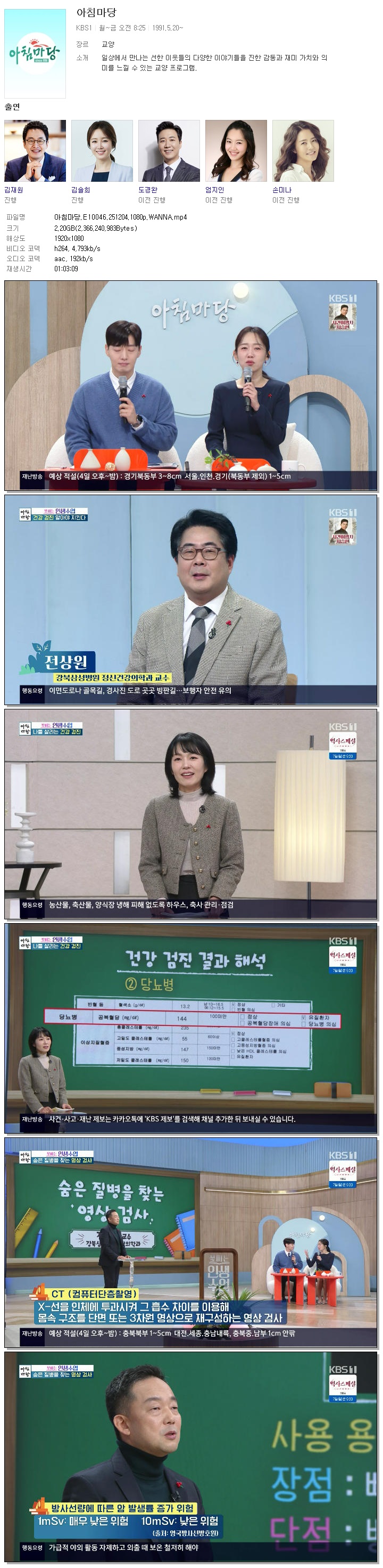 | [KBS1] 아침마당.E10046.251204.1080p.WANNA[엄지인, 박철규].mp4 | 2.2 G | 01:03:09 | 1920x1080 |