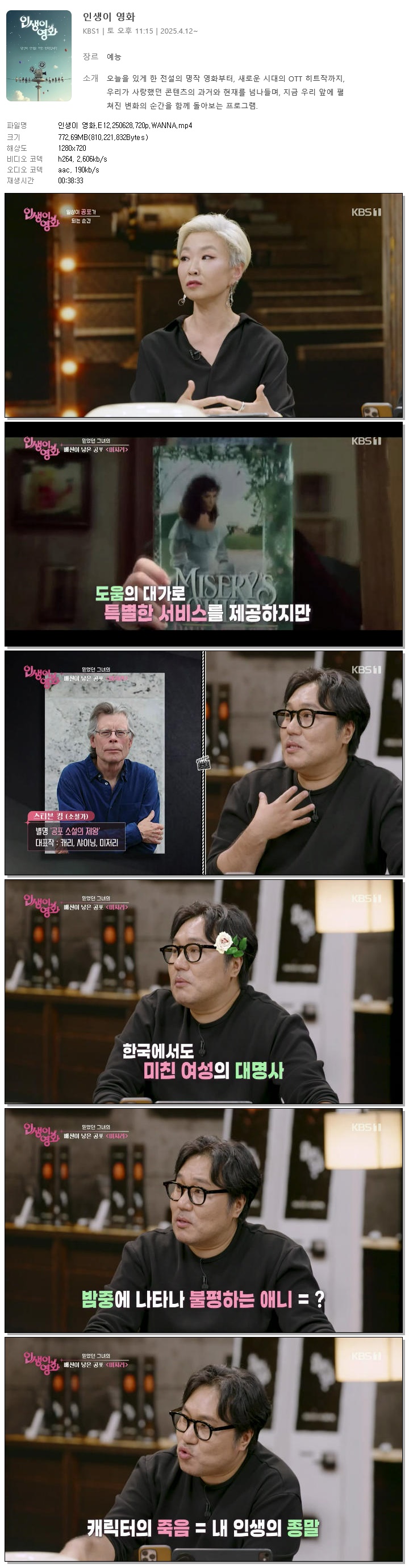 [KBS1] 인생이 영화.E12.250628.720p.WANNA.mp4 772.7 M 00:38:33 1280x720