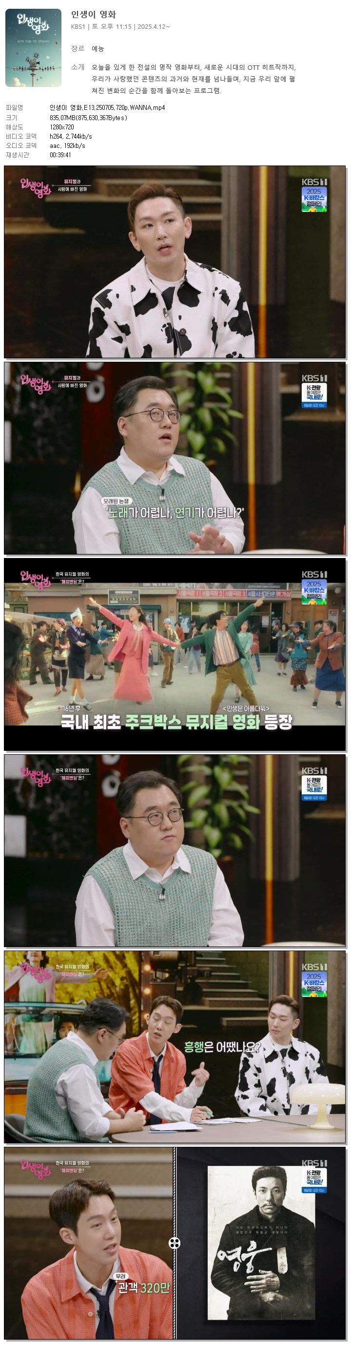 [KBS1] 인생이 영화.E13.250705.720p.WANNA.mp4 835.1 M 00:39:41 1280x720
