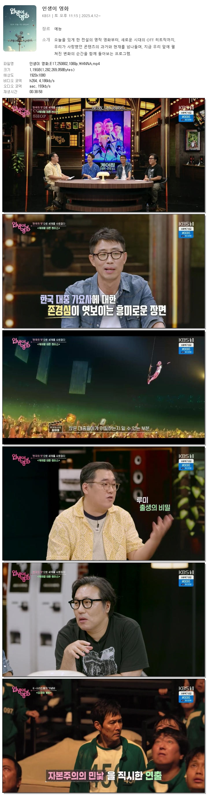 [KBS1] 인생이 영화.E17.250802.1080p.WANNA.mp4 1.2 G 00:38:58 1920x1080