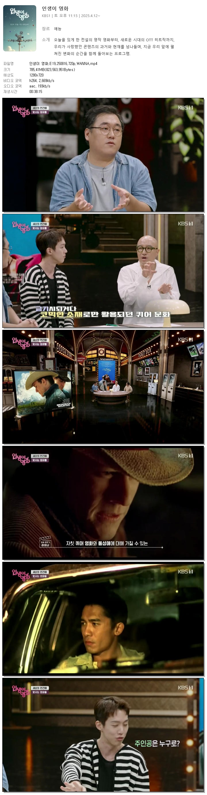[KBS1] 인생이 영화.E19.250816.720p.WANNA 다시보기 토렌트