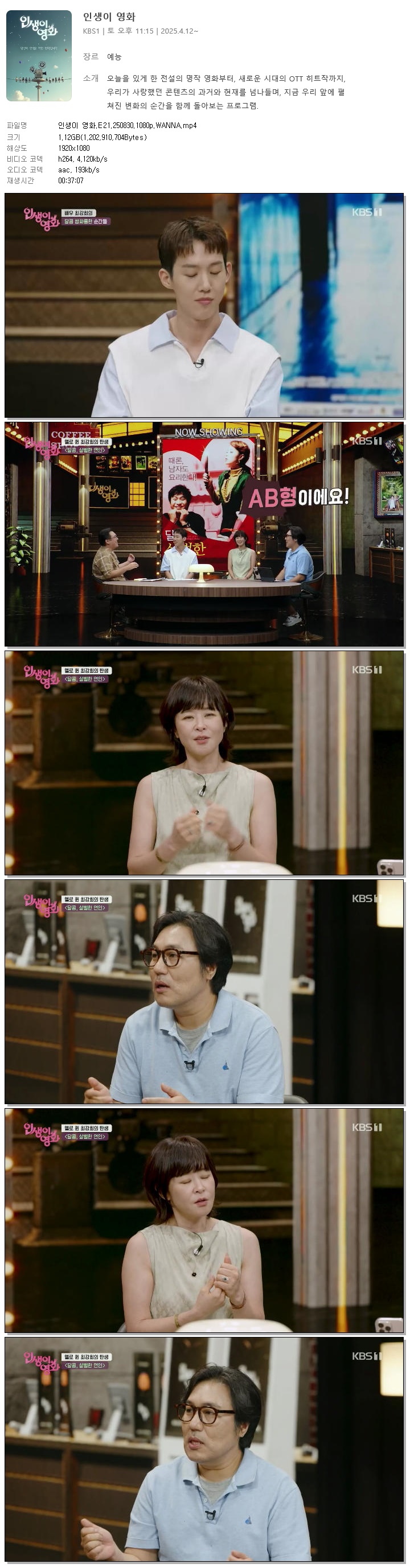 [KBS1] 인생이 영화.E21.250830.1080p.WANNA 다시보기 토렌트