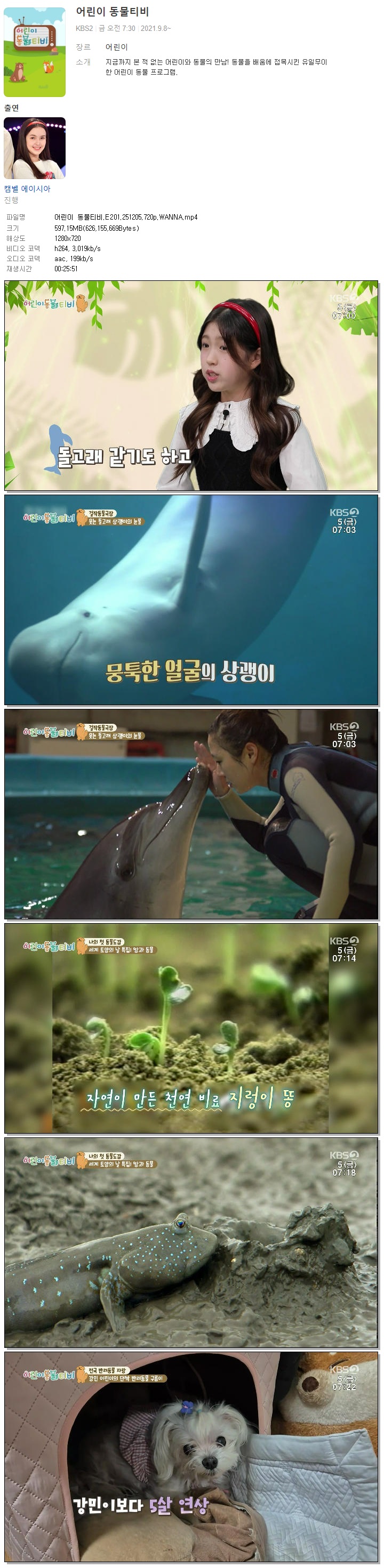 | [KBS2] 어린이 동물티비.E201.251205.720p.WANNA[캠벨 에이시아].mp4 | 597.1 M | 00:25:51 | 1280x720 |