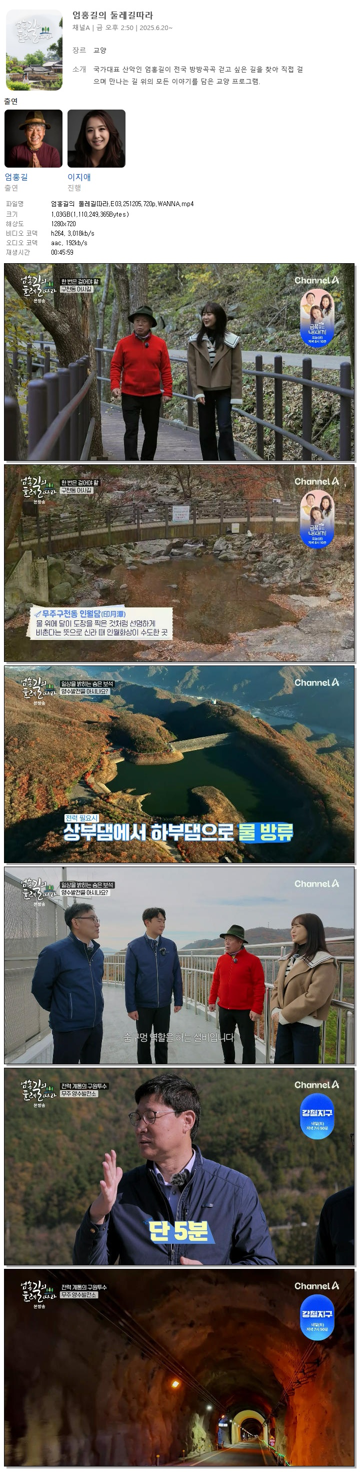 [채널A] 엄홍길의 둘레길따라.E03.251205.720p.WANNA[엄홍길].mp4 1 G 00:45:59 1280x720