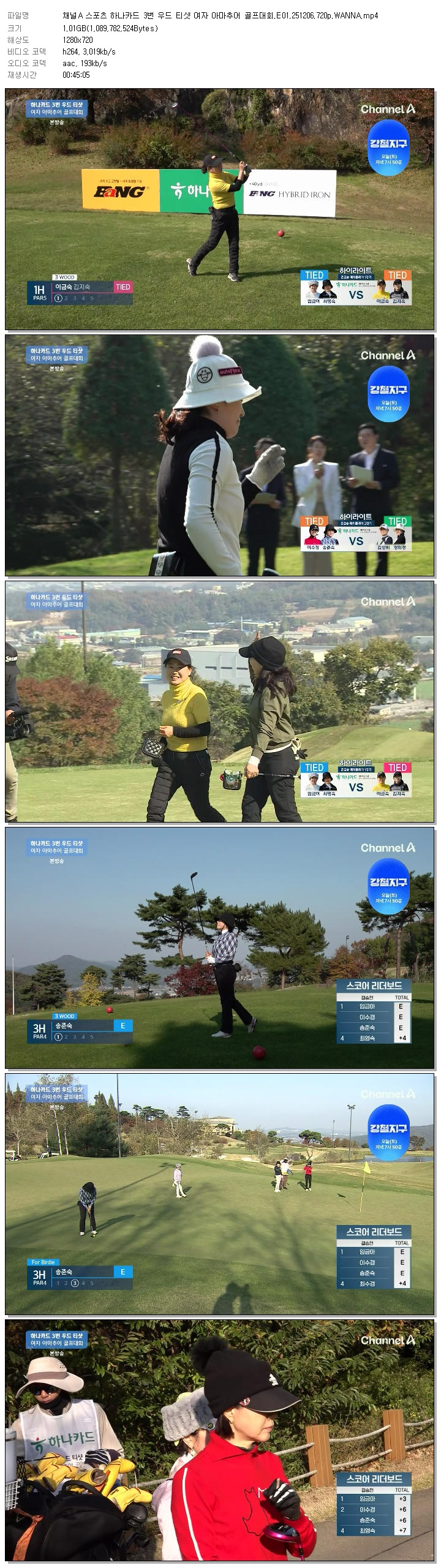| [채널A] 채널A 스포츠 하나카드 3번 우드 티샷 여자 아마추어 골프대회.E01.251206.720p.WANNA.mp4 | 1 G | 00:45:05 | 1280x720 |