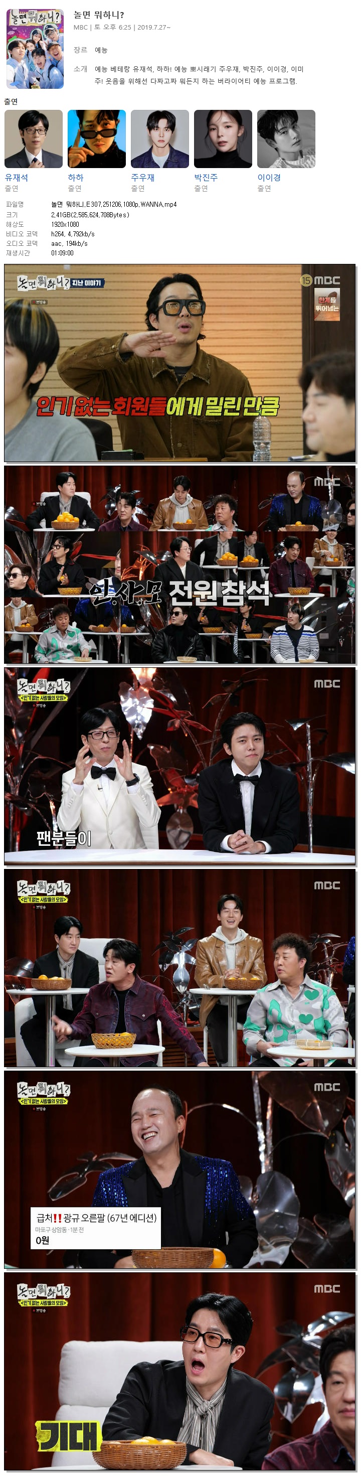 | [MBC] 놀면 뭐하니.E307.251206.1080p.WANNA[김광규, 허경환].mp4 | 2.4 G | 01:09:00 | 1920x1080 |