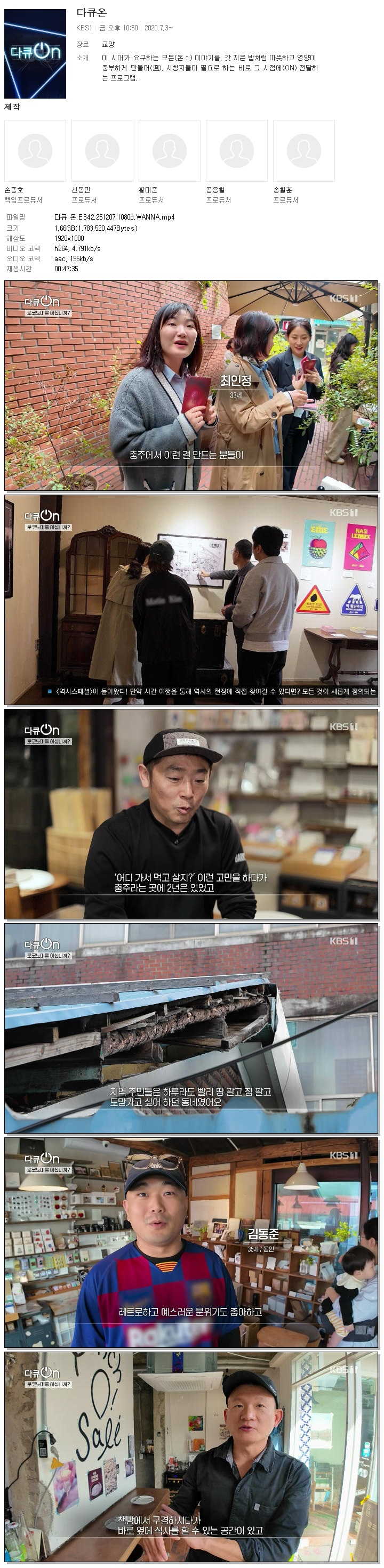 | [KBS1] 다큐 온.E342.251207.1080p.WANNA.mp4 | 1.7 G | 00:47:35 | 1920x1080 |