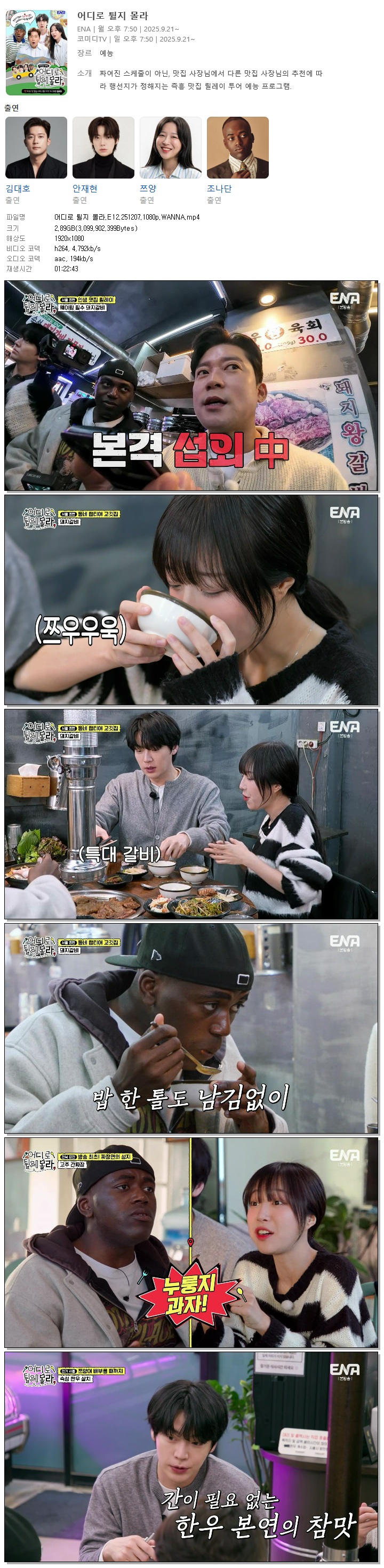 | [ENA] 어디로 튈지 몰라.E12.251207.1080p.WANNA[김대호, 조나단].mp4 | 2.9 G | 01:22:43 | 1920x1080 |