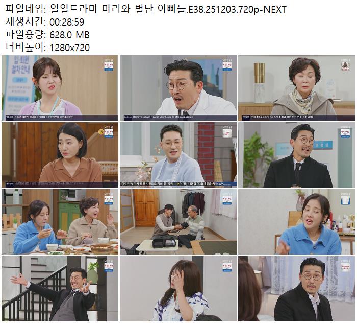| 일일드라마 마리와 별난 아빠들.E38.251203.720p-NEXT.mp4 | 628 M | - | 1280x720 |