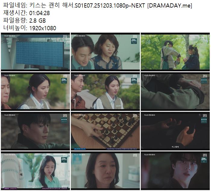 | 키스는 괜히 해서.S01E07.251203.1080p-NEXT [DRAMADAY.me].mp4 | 2.8 G | - | 1920x1080 |