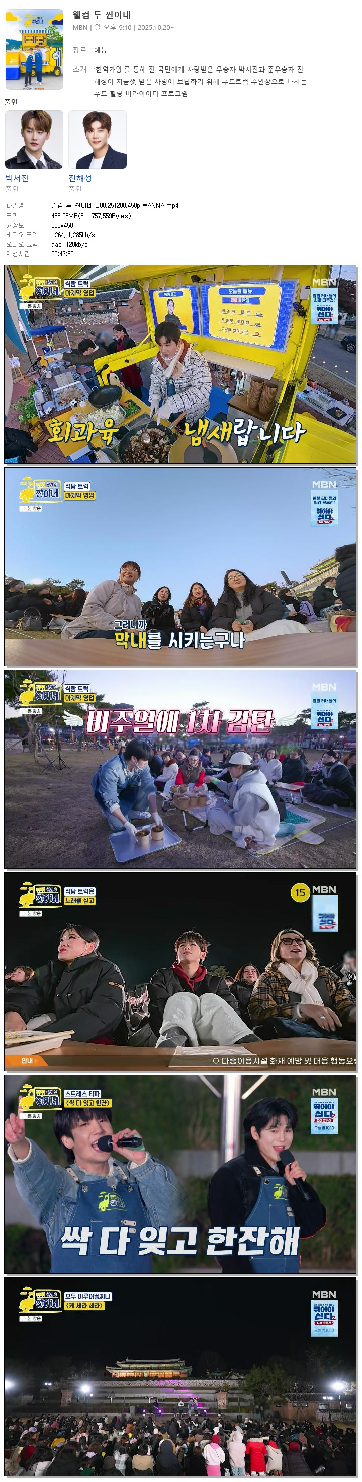 | [MBN] 웰컴 투 찐이네.E08.251208.450p.WANNA[박서진, 진해성].mp4 | 488.1 M | 00:47:59 | 800x450 |