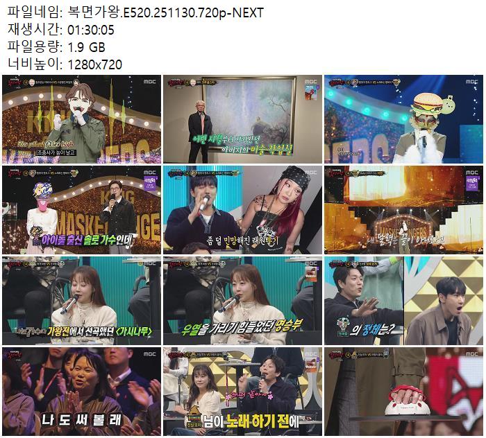 | 복면가왕.E520.251130.720p-NEXT.mp4 | 1.9 G | - | 1280x720 |