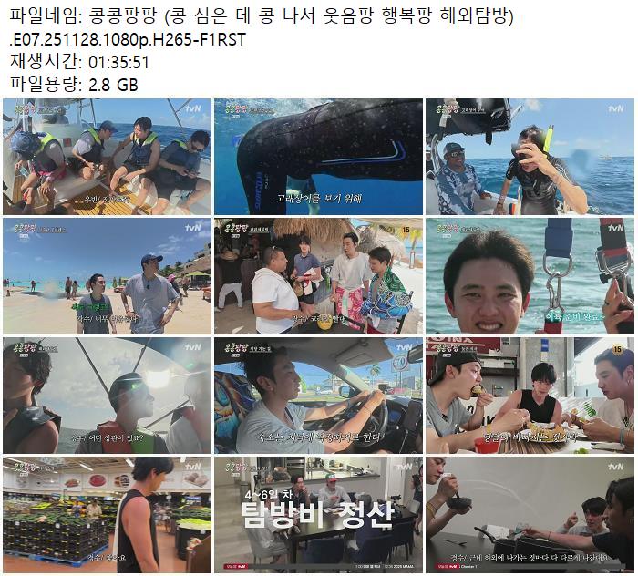 | 콩콩팡팡 (콩 심은 데 콩 나서 웃음팡 행복팡 해외탐방).E07.251128.1080p.H265-F1RST.mp4 | 2.8 G | - | 1920x1080 |