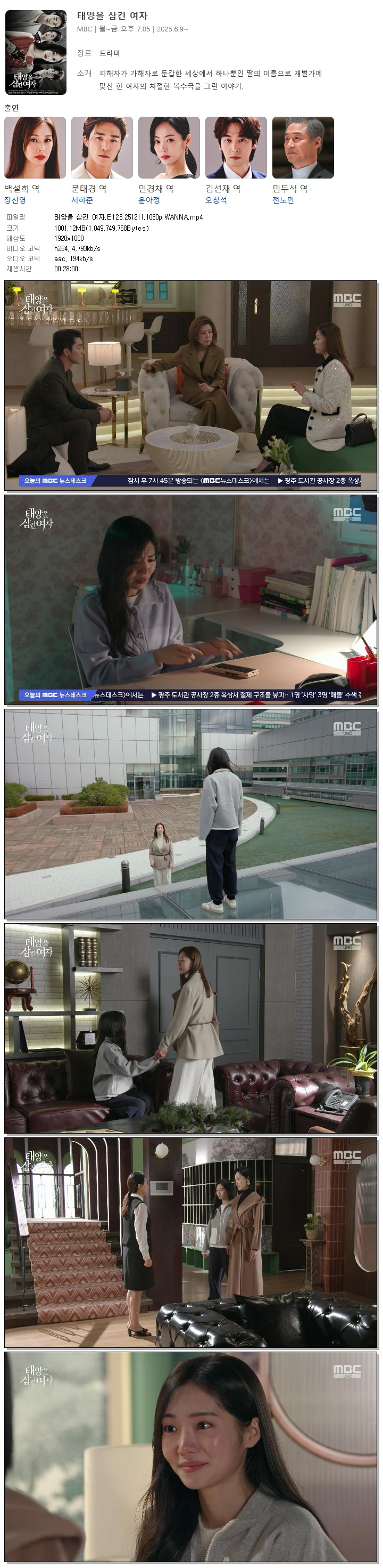 [MBC] 태양을 삼킨 여자.E123.251211.1080p.WANNA[장신영, 서하준] 다시보기 토렌트