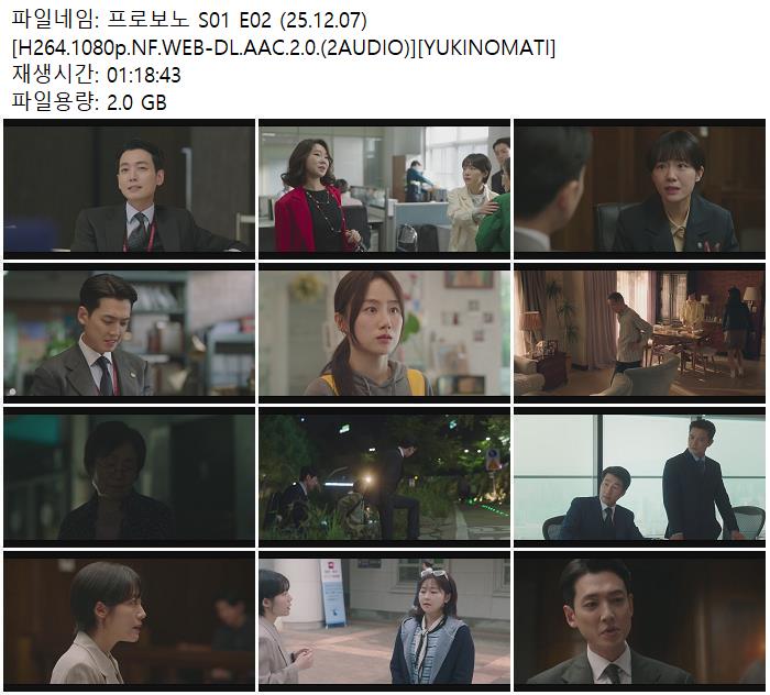 | 프로보노 S01 E02 (25.12.07) [H264.1080p.NF.WEB-DL.AAC.2.0.(2AUDIO)][YUKINOMATI].mkv | 2 G | - | 1920x1080 |