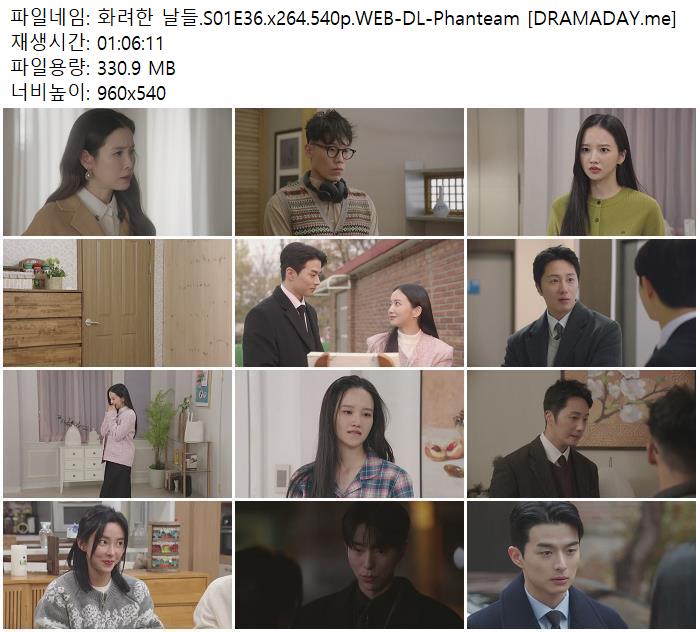 | 화려한 날들.S01E36.x264.540p.WEB-DL-Phanteam [DRAMADAY.me].mkv | 330.9 M | - | 960x540 |