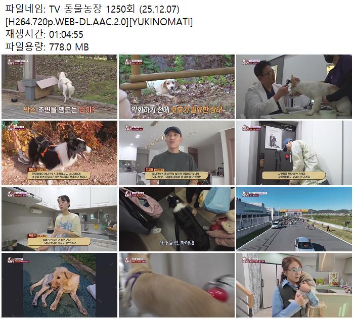 TV 동물농장 1250회 (25.12.07) [H264.720p.WEB-DL.AAC.2.0][YUKINOMATI] 다시보기 토렌트