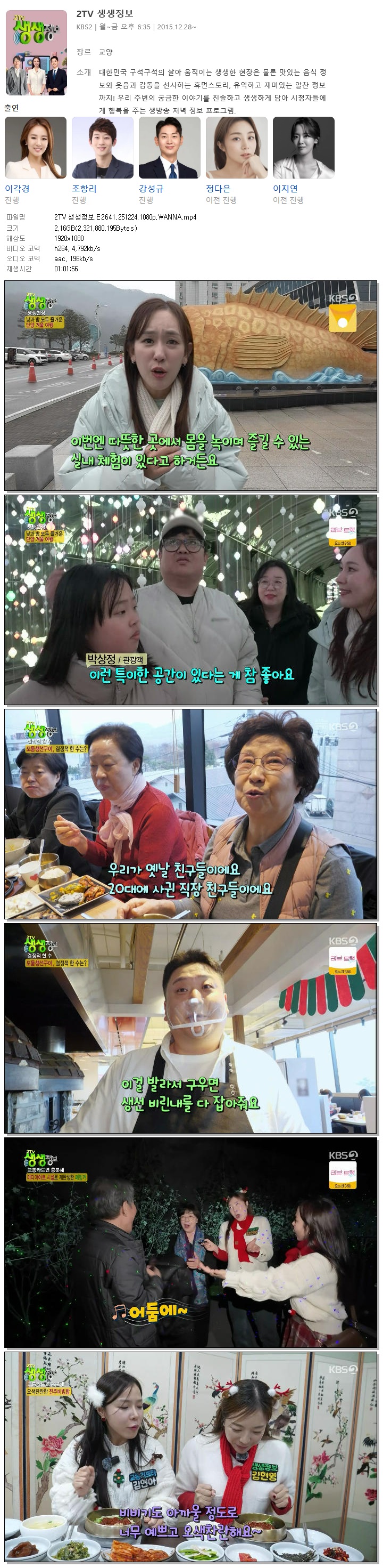 [KBS2] 2TV 생생정보.E2641.251224.1080p.WANNA[이각경, 조항리].mp4 2.2 G 01:01:56 1920x1080