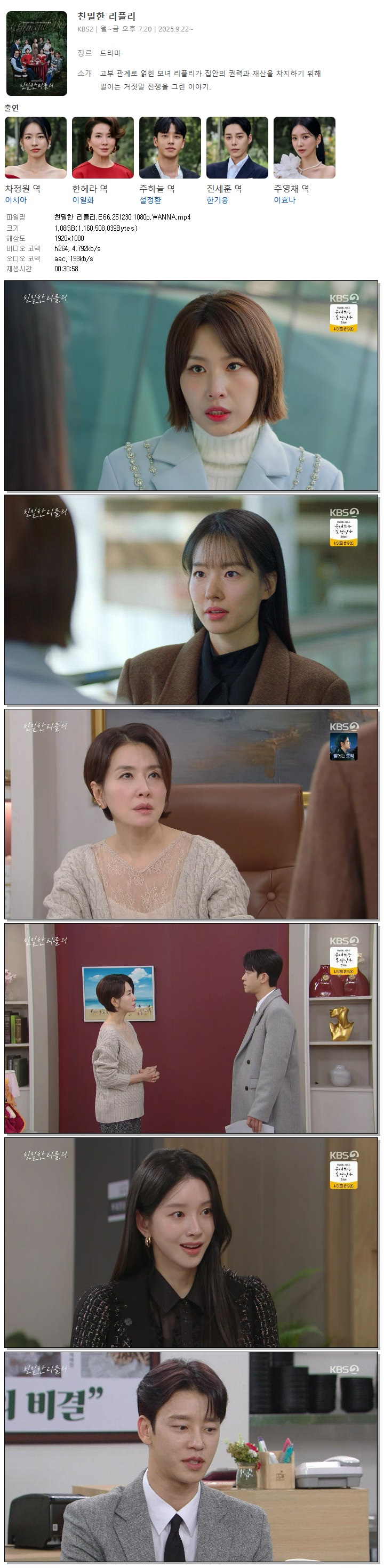 [KBS2] 친밀한 리플리.E66.251230.1080p.WANNA[이시아, 이일화] 다시보기 토렌트