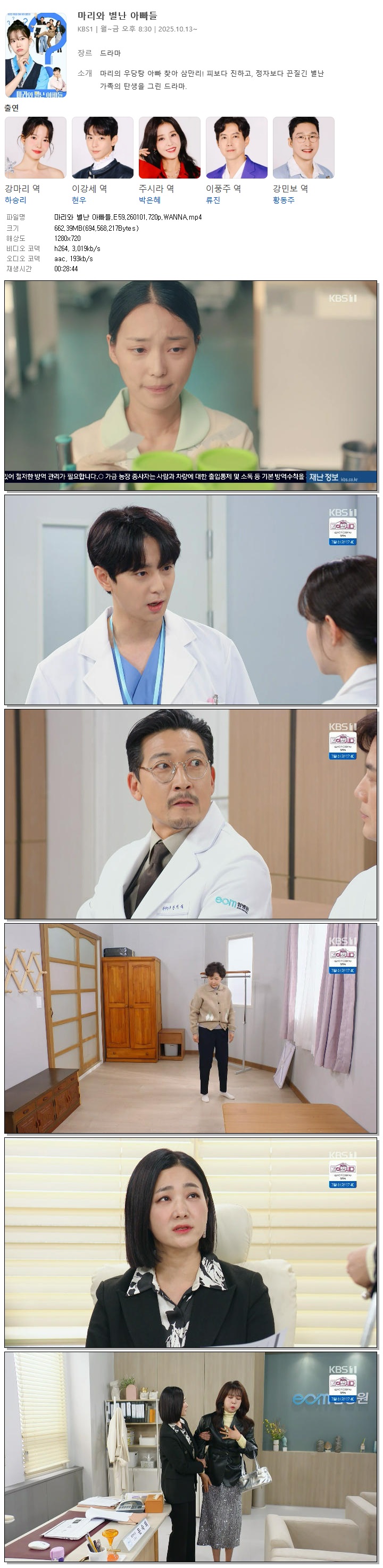 [KBS1] 마리와 별난 아빠들.E59.260101.720p.WANNA[하승리, 현우] 다시보기 토렌트