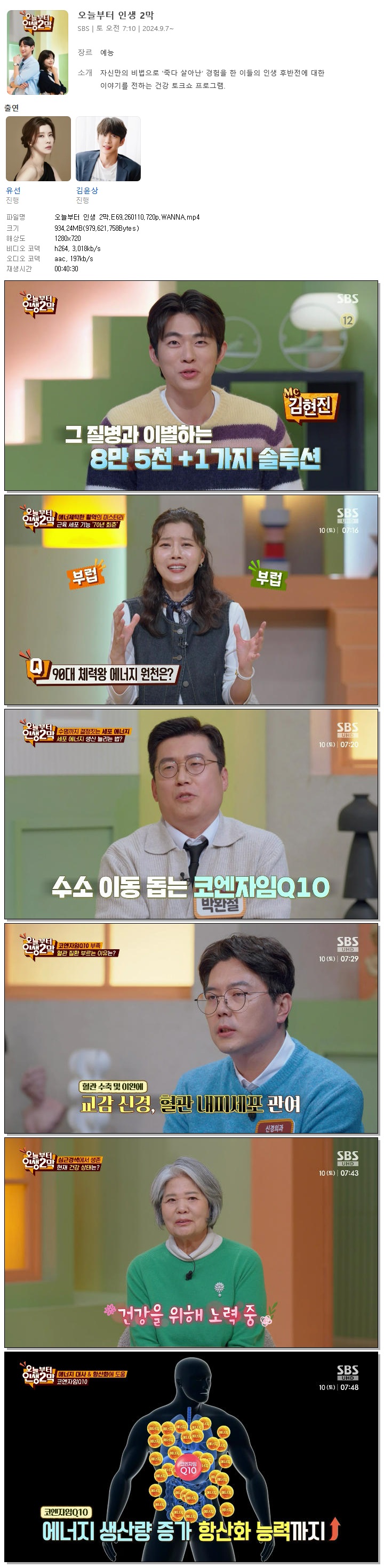 | [SBS] 오늘부터 인생 2막.E69.260110.720p.WANNA[유선, 김현진].mp4 | 934.2 M | 00:40:30 | 1280x720 |